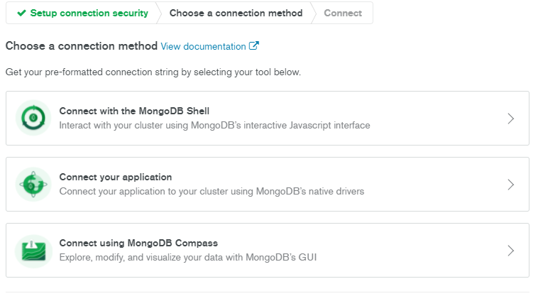 나는 몽고DB compass에서 보려고했기 떄문에 Compass를 선택했다.