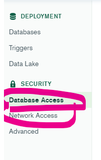 Database Access, Network Access를 설정해준다.
