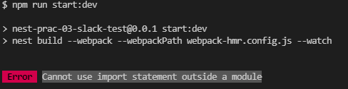 nestjs에서 webpack Hot reload적용하려했는데, 자꾸 아래와 같은 오류가..