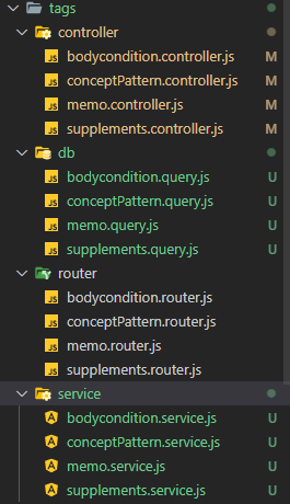 controller, db, router, service 폴더를 나눴다.