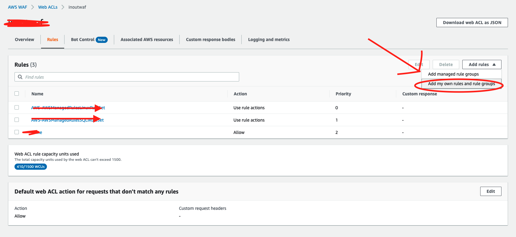 AWS WAF -> Web ACLs -> acl 선택 후에
