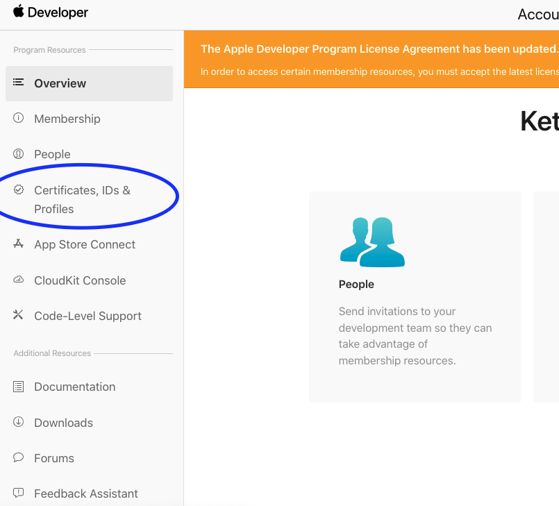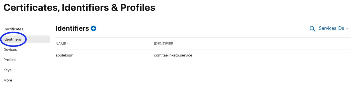 등록된 앱이 없다면 Certificates에서 하나 만들면 되겠다.
