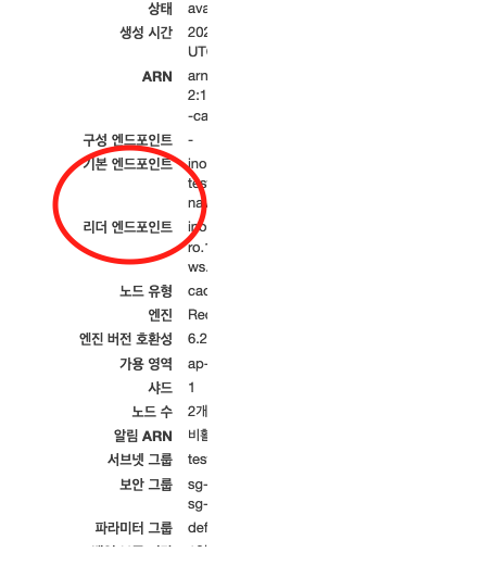 해당 사진은 ElasticCache 대시보드에 Redis에 있다.