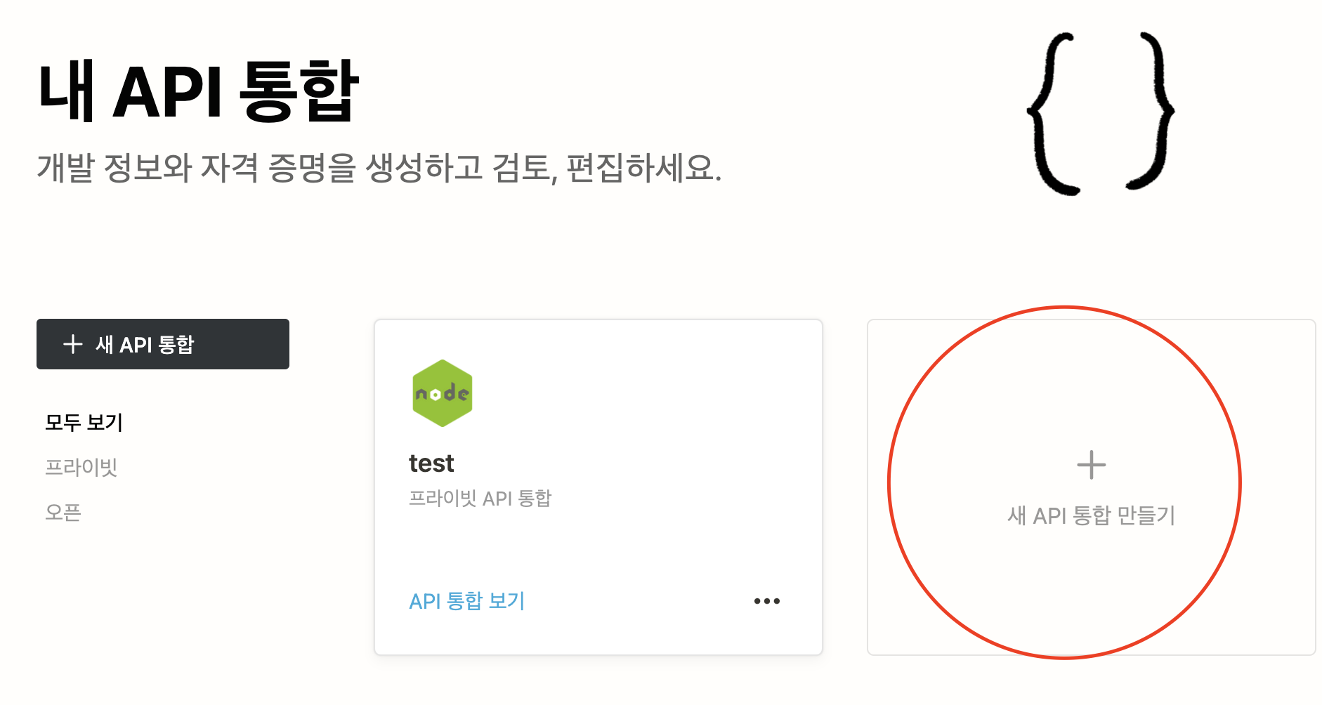 4. 새 API 통합을 만들고, 토큰을 저장한다.