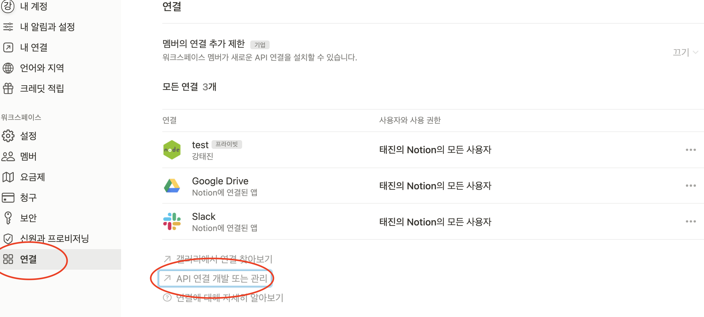 5. 연결할 노션 페이지와 방금 만든 API통합을 연결해준다.
