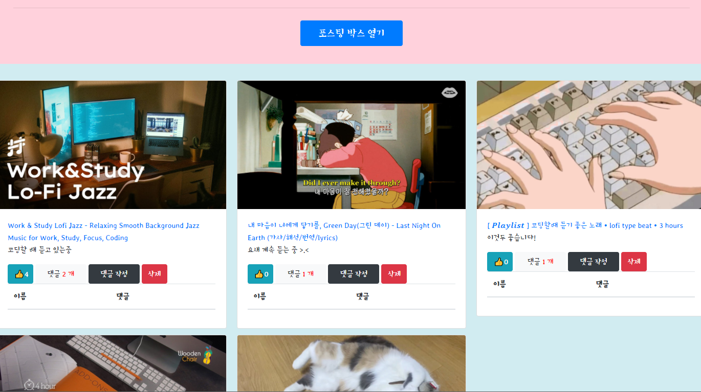 링크 가져오면, 좋아요, 삭제, 댓글, 댓글수 버튼을 함께 가져오는 부분 예제.